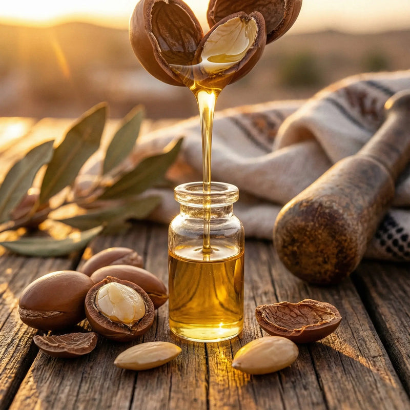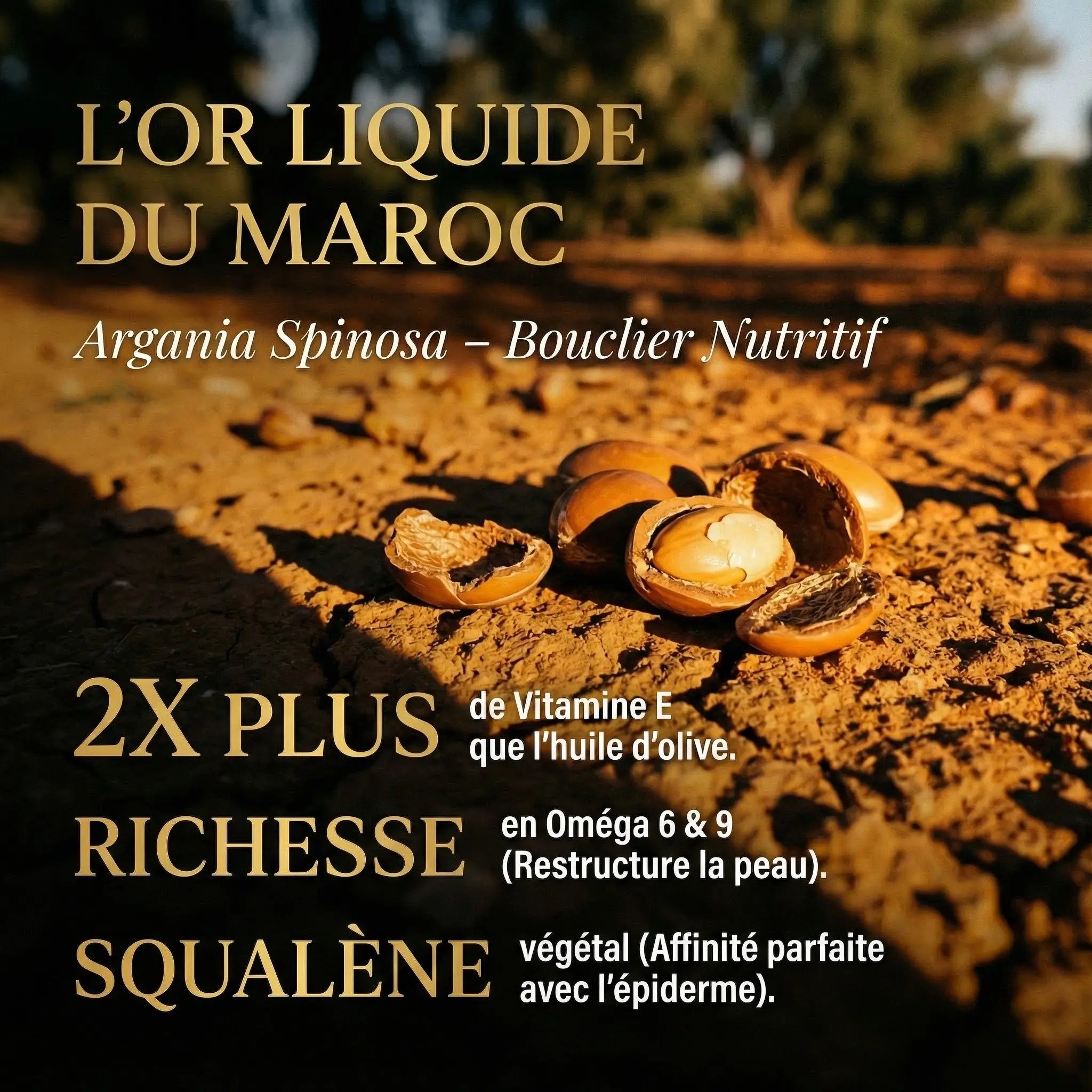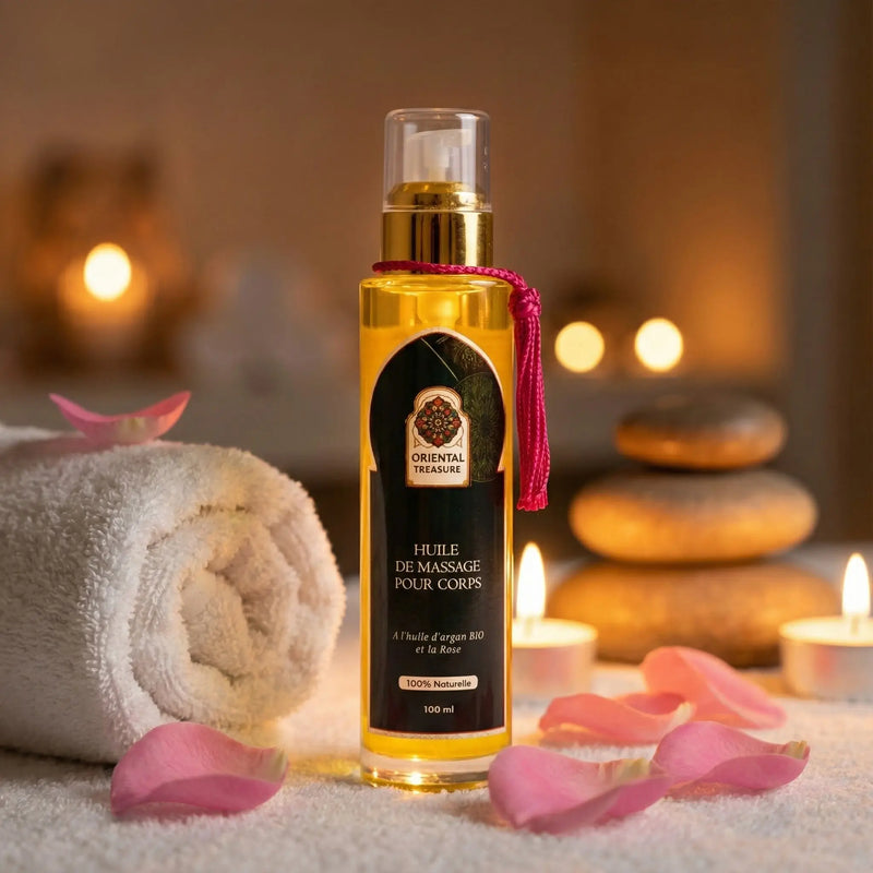 L'héritage marocain en bouteille. Une huile pure, riche et généreuse (Format Traditionnel) pour nourrir le corps en profondeur, satiner la peau et sublimer vos massages.