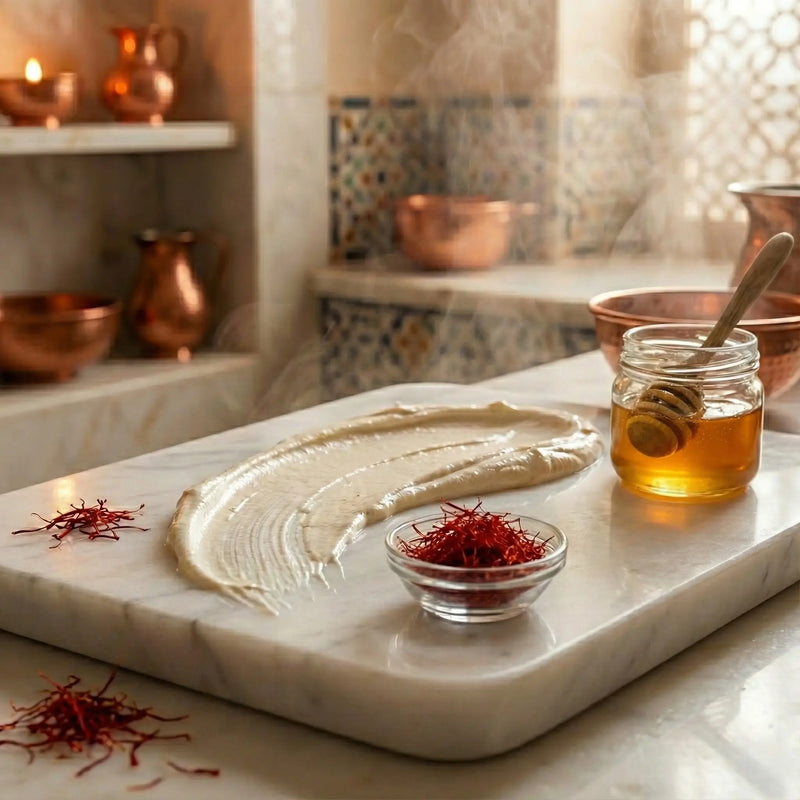 Le secret des femmes du Sahara. Une cure détox complète (Gommage + Masque) pour effacer les zones d'ombre et retrouver un teint lumineux dès les premières utilisations.