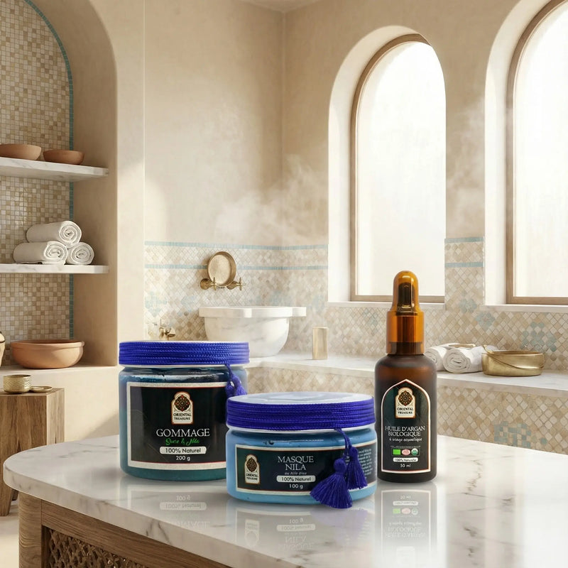 'ai grandi avec le hammam et franchement, ce savon noir est top. Il est bien riche, il ne coule pas partout. L'odeur de l'Eucalyptus débouche le nez sous la douche, c'est hyper relaxant. Et le gel douche au Oud... une dinguerie, l'odeur reste sur la peau toute la soirée.