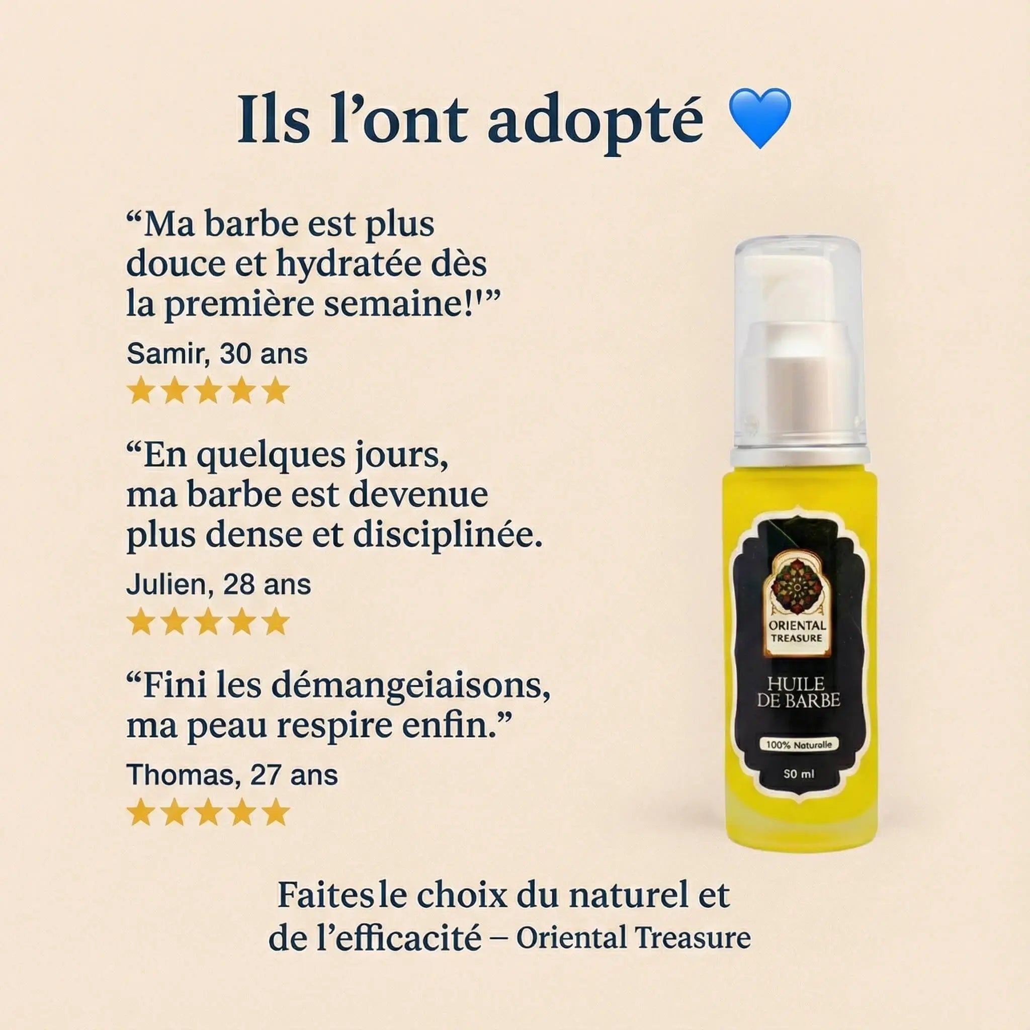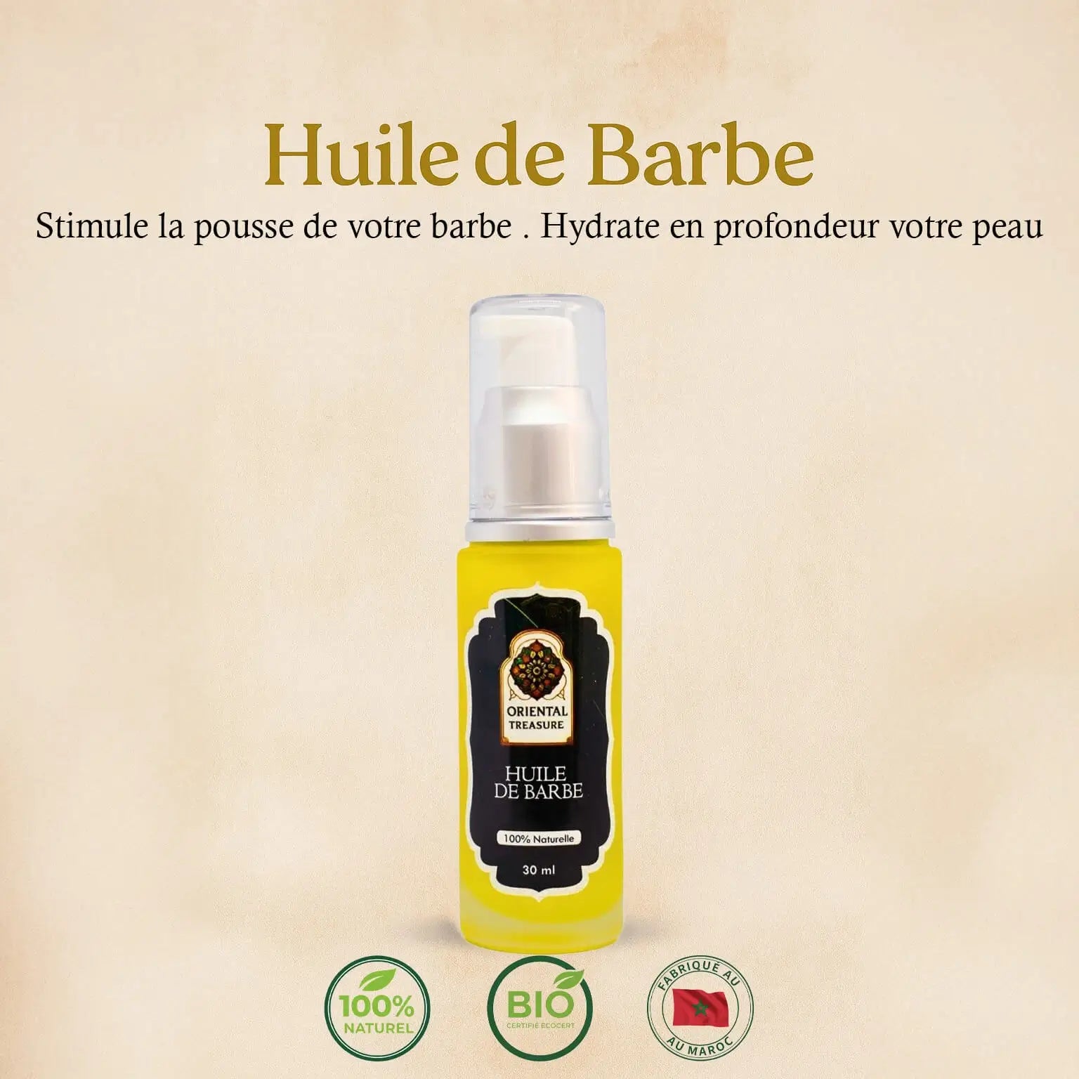 Pflegen Sie Ihren Bart mit Oriental Treasure Beard Oil , einer mit natürlichen Ölen angereicherten Formel, die die Haare nährt, weich macht und stärkt und gleichzeitig die Haut unter Ihrem Bart schützt. Dieses Öl wurde speziell entwickelt, um tiefgehend Feuchtigkeit zu spenden. Es lindert Juckreiz, beugt Trockenheit vor und macht Ihren Bart weich, glänzend und kämmbar.